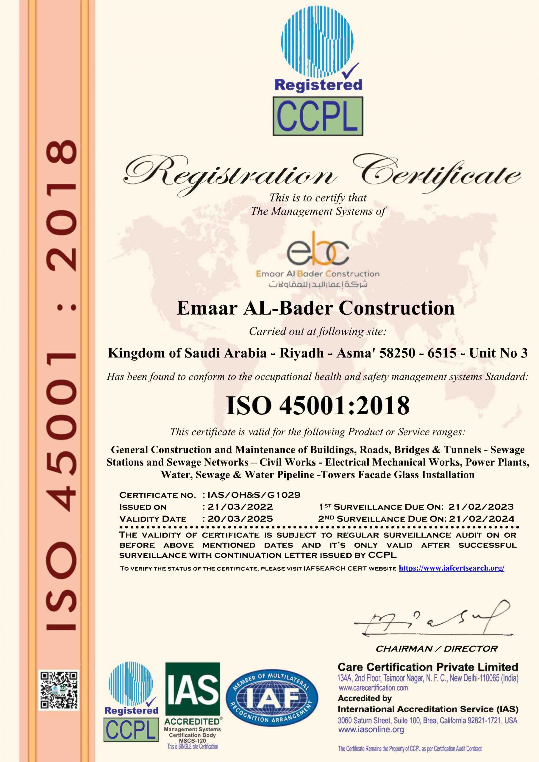 ISO 45001:2018 (Occupational Health and Safety Management System)