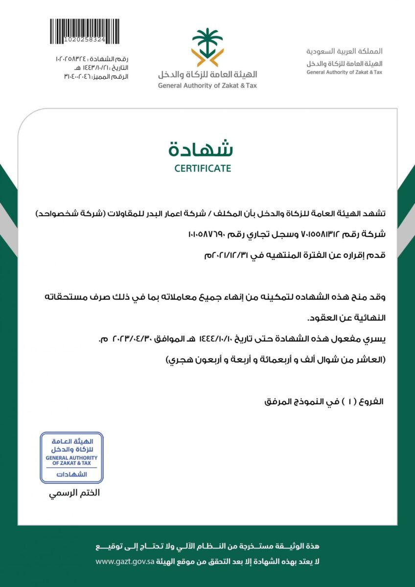 The Company is characterized by the highest level of administrative and technical staff, which makes it a priority in the work field. This is further supported by the availability of current and future work plans that illustrate the Company's work progress, growth level, and the efficiency with which it completes assigned tasks.